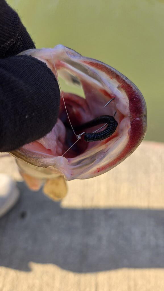 この日はダウンショットオンリーで攻略するつもりで来ましたが、これも店員さんいわく、ストレートワームのノーシンカーで釣果があがっているとのこと。