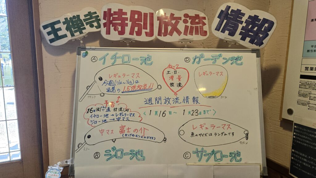しかし、今週は放流1.5倍らしく、なんとか鳥害に対抗しようとしている王禅寺さんの気概を感じざるを得ません!